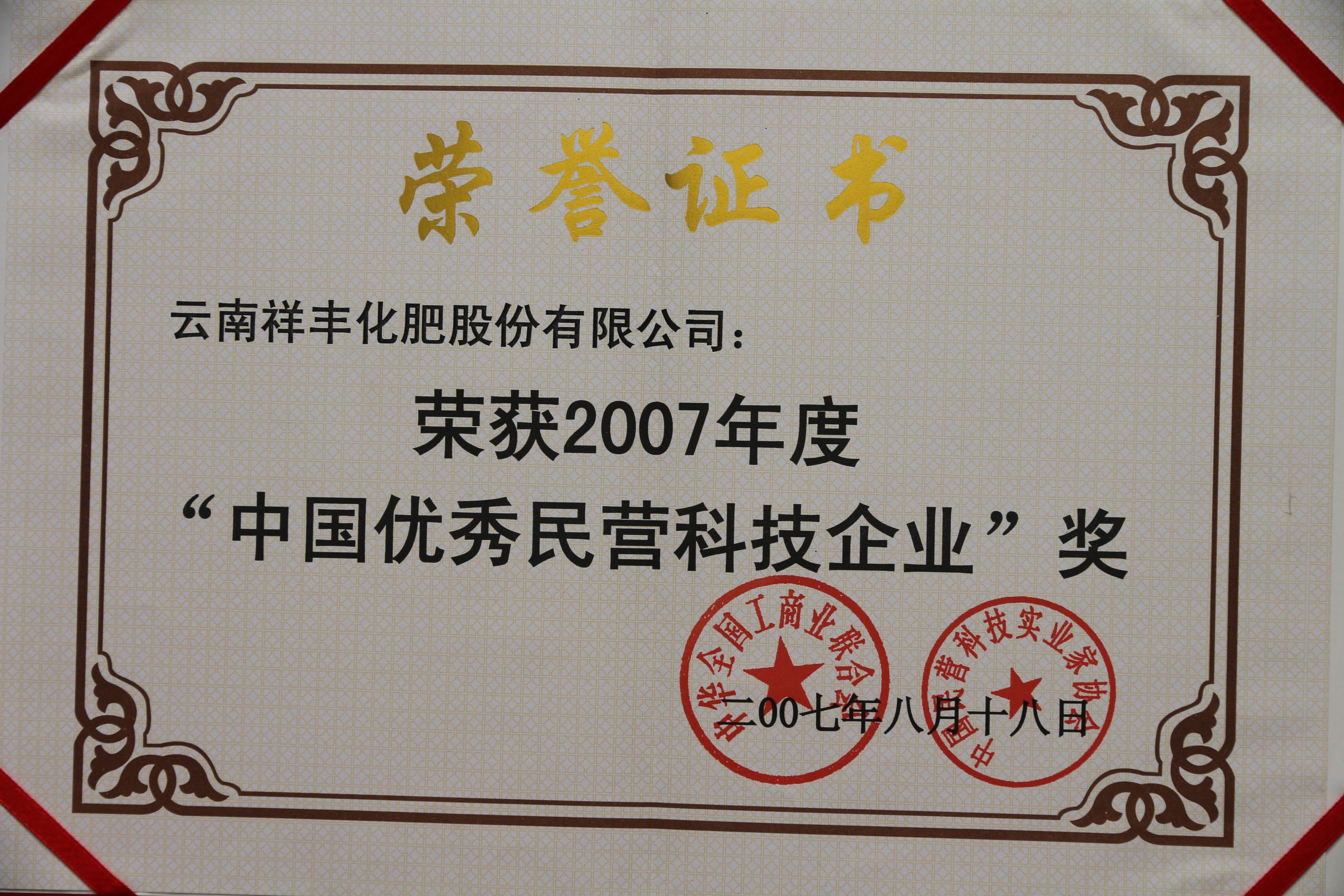 2007年度"中國優(yōu)秀民營科技企業(yè)"獎